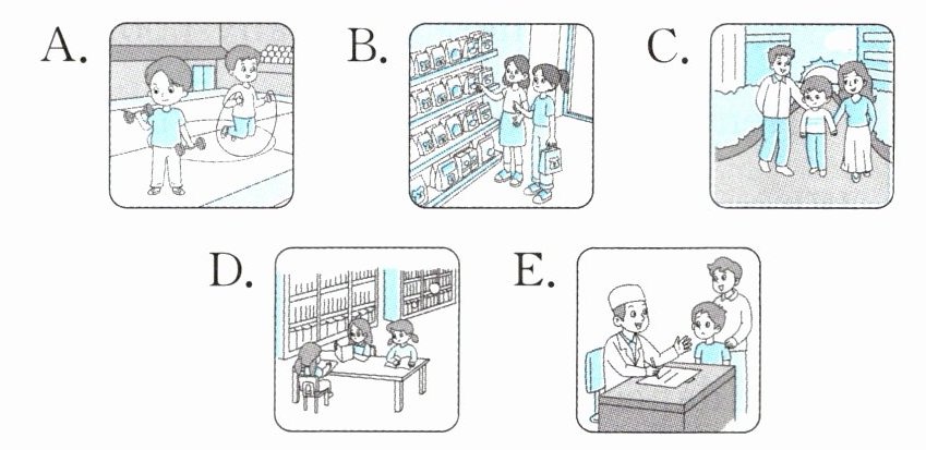 ( )3. 今天是校园开放日,你向家长们介绍学校的图书馆:This is our library.