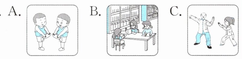 一 听录音,圈出与所听内容相符的图片选项。(听两遍)