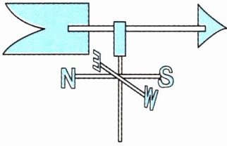 ( )2. This wind vane in the picture shows that the wind is blowing from the ______.