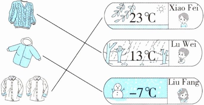 1. —It's cold and snowy. Whose coat is it? —It's Liu Fang's. 2. —It's warm and sunny/windy. Whose shirts are these? —They're Xiao Fei's.