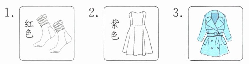 五 学校正在举办服装秀,小朋友们在展示自己喜欢的服装。读一读,给衣服涂上正确的颜色并补全表格。(填序号)