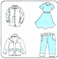 This is Sarah. She likes the yellow coat. This is Mike. He likes black socks. This is John. He likes that blue shirt. This is Chen Jie. She likes this red dress. And Amy likes that pink sweater.
