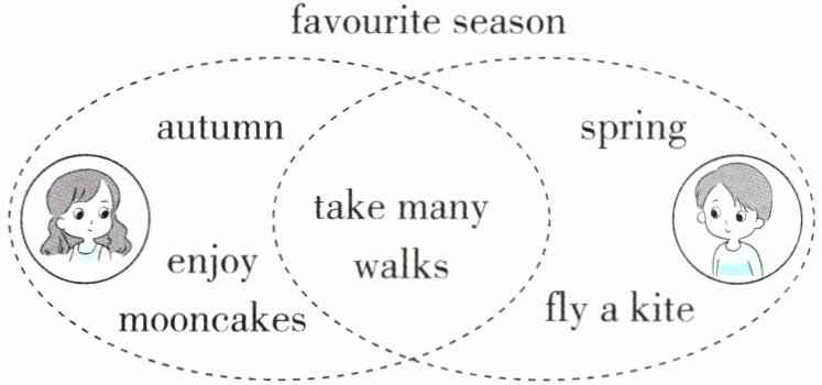 | A. spring | B. autumn | C. take many walks | D. enjoy mooncakes | E. fly a kite |