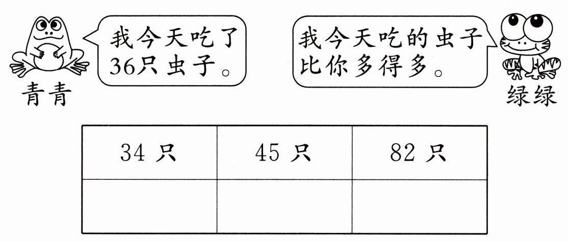 1. 绿绿青蛙可能吃了多少只虫子?画“√”。