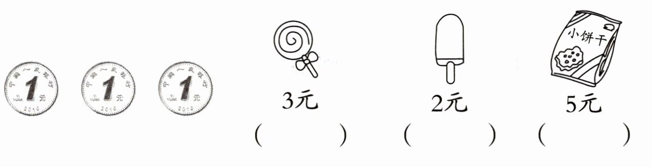 1. 给出的钱能买什么?在能买的物品下面画“√”。