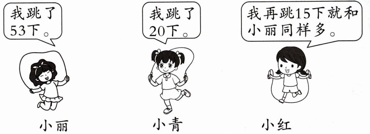 小青和小红一共跳了多少下?20 + 38 = 58(下)(答案不唯一)