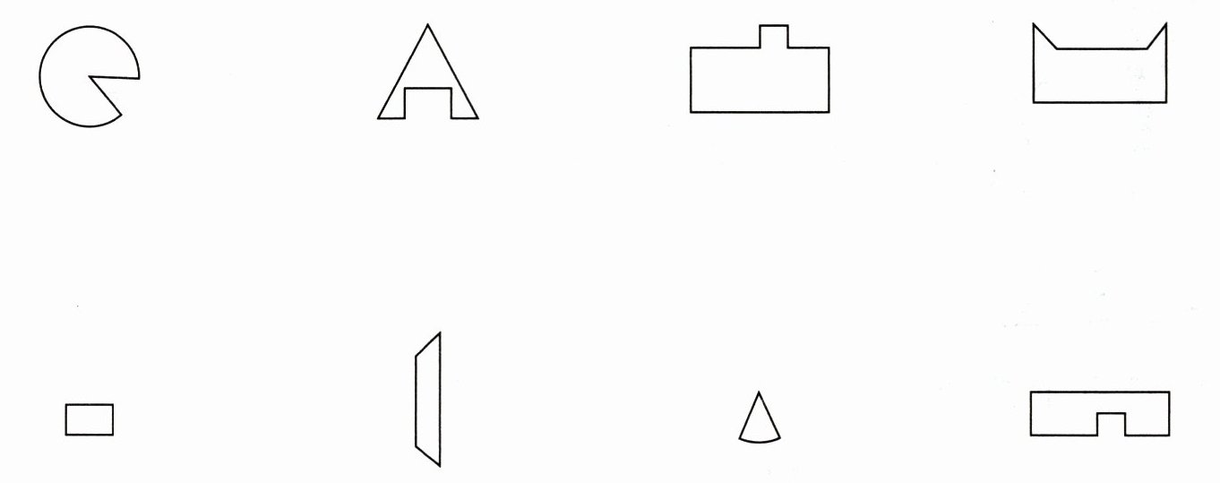 2. 下面的图形是从上面哪一个图形上剪下来的?(连一连)