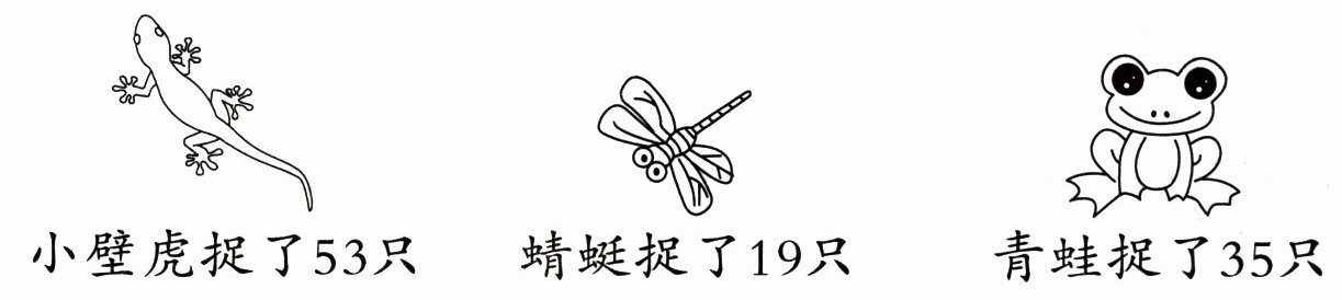 (1)小壁虎和蜻蜓一共捉了多少只?