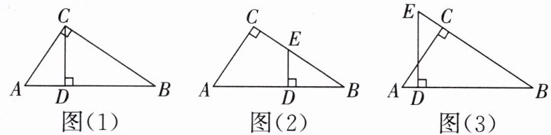 13. 教材题延伸与拓展 (1)如图(1)所示,在$Rt\triangle ABC$中,$\angle ACB = 90^{\circ}$,$CD\perp AB于点D$. 图中有与$\angle A$相等的角吗? 为什么?