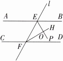 11. 如图所示,已知直线$AB// CD$,直线$l与AB$,$CD分别相交于点E$,$F$,$EP平分\angle BEF$,$FH平分\angle DFE$,$EP与FH相交于点O$. 求证:$\triangle EOF$为直角三角形.