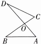 1. 如图所示,AD,BC 交于点 O,对于△AOB 和△COD,有下列关系:①∠DOC = ∠AOB;② ∠D + ∠C = ∠A + ∠B;③∠D = ∠B;④∠C = ∠A. 其中正确的是