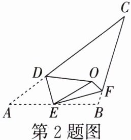 2. 如图所示,将$\triangle ABC沿DE$,$EF$翻折,顶点$A$,$B均落在点O$处,且$EA与EB重合于线段EO$,$\angle CDO+\angle CFO= 108^{\circ}$,则$\angle C$的度数为(