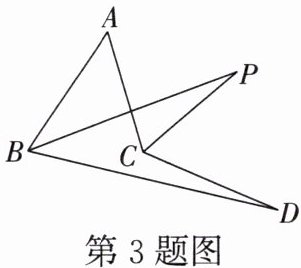3. 如图所示,$\angle ABD$,$\angle ACD的平分线交于点P$,若$\angle A= 50^{\circ}$,$\angle D= 10^{\circ}$,则$\angle P$的度数为(