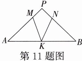11. 如图所示,在△PAB中,∠A= ∠B,M,N,K分别是PA,PB,AB上的点,且AM= BK,BN= AK.若∠MKN= 44°,则∠P的大小为(