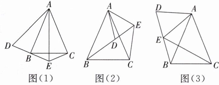 (1)如图(1)所示,点$B在线段DE$上,求证:$\angle DAE = \angle BAC$;