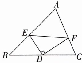 8. 如图所示,在 $ \triangle ABC $ 中,点 $ D $ 是 $ BC $ 的中点,点 $ E $,$ F $ 分别在 $ AB $,$ AC $ 上,且 $ DE \perp DF $,求证:$ BE + CF > EF $。