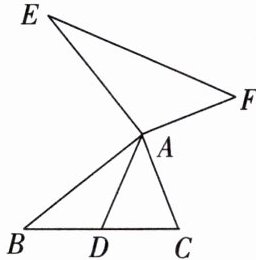 7. 如图所示,$ AD $ 是 $ \triangle ABC $ 的中线,$ AB = AE $,$ AC = AF $,$ \angle BAE = \angle CAF = 90° $,判断线段 $ EF $ 和 $ AD $ 的数量关系和位置关系,并加以证明。