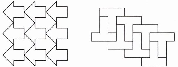 3. 如图所示,下面的图案分别是由若干个全等的基本图案拼成的。请你找出这个基本图案并画出来,再仿照此方法设计一个美丽的图案。