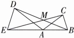 4. (2025 德阳期末)如图所示,在 $ \triangle ABC $ 和 $ \triangle AED $ 中,$ AB = AC $,$ AE = AD $,$ \angle BAC = \angle EAD $,且点 $ E $,$ A $,$ B $ 在同一直线上,点 $ C $,$ D $ 在 $ EB $ 同侧,连接 $ BD $,$ CE $ 交于点 $ M $。求证:$ \triangle ABD \cong \triangle ACE $。