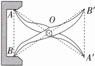 1. 如图所示,工人师傅设计了一种测零件内径 $ AB $ 的卡钳,卡钳交叉点 $ O $ 为 $ AA' $,$ BB' $ 的中点,只要量出 $ A'B' $ 的长度,就可以知道该零件内径 $ AB $ 的长度,依据是