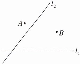 7. 教材题变式 两个城镇$A$,$B与两条公路l_{1}$,$l_{2}$的位置如图所示,电信部门需在$C$处修建一座信号发射塔,要求发射塔到两个城镇$A$,$B$的距离相等,到两条公路$l_{1}$,$l_{2}$的距离也相等,那么点$C$应选在何处?请在图中找出所有符合条件的点$C$(尺规作图,不写作法,只保留作图痕迹).