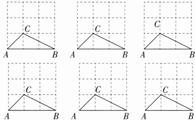 4. 如图所示,在 $ 3 × 3 $ 的正方形格点图中,有格点 $ \triangle ABC $,若有另一格点 $ \triangle DEF $ 与 $ \triangle ABC $ 关于某直线成轴对称,请在下面的图中画出所有的 $ \triangle DEF $.