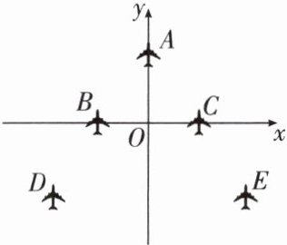 2. 如图所示是战机在空中展示的轴对称队形.以飞机 $ B,C $ 所在直线为 $ x $ 轴、队形的对称轴为 $ y $ 轴建立平面直角坐标系.若飞机 $ E $ 的坐标为 $ (40,a) $,则飞机 $ D $ 的坐标为(