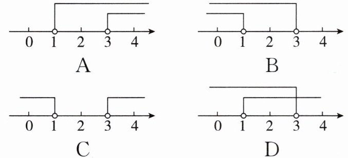 7. 已知点 $ P(m - 3,m - 1) $ 关于 $ y $ 轴的对称点在第一象限,则 $ m $ 的取值范围在数轴上表示正确的是(