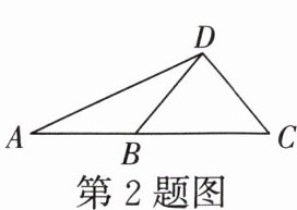 2. 如图所示,在$\triangle ADC$中,$AB= BD= CD$。若$\angle ADC= 105^{\circ}$,则$\angle A$的度数为(