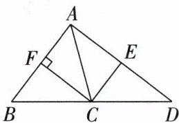 6. 如图所示,点$D为\triangle ABC的边BC$延长线上一点,且$CD= CA= CB$,点$E是AD$的中点,$CF\perp AB$,垂足是$F$。求证:$CE\perp CF$。