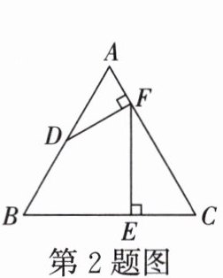 2. 如图所示,在等边三角形ABC中,BC = 8,点D是AB的中点,过点D作DF⊥AC于点F,过点F作EF⊥BC于点E,则BE的长为(