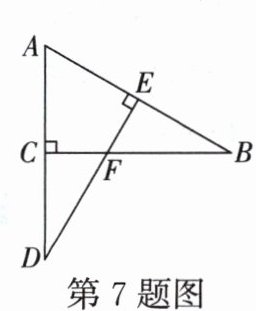 7. (2025德阳期末)如图所示,在直角三角形ABC中,已知∠ACB = 90°,点E是AB的中点,且DE⊥AB,DE交AC的延长线于点D,交BC于点F。若∠D = 30°,EF = 2,则DF的长是(