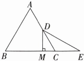 2. 如图所示,已知在等边三角形$ABC$中,$D是AC$的中点,$E是BC$延长线上的一点,且$CE = CD$,$DM\perp BC$,垂足为$M$。