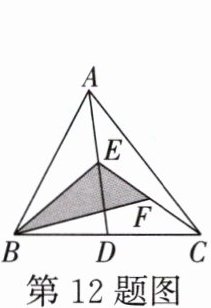 12. (2024 泰安)如图所示,在△ABC 中,点 D,E,F 分别为 BC,AD,CE 的中点,且$ S_{△ABC} = 4 cm^2,$则阴影部分的面积为