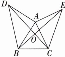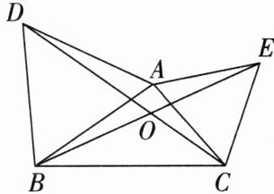 2. 如图所示,分别以$\triangle ABC的两边AB$,$AC为边向外作等边三角形ABD和等边三角形ACE$,$DC$,$BE相交于点O$.