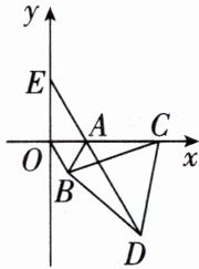 3. 如图所示,在平面直角坐标系中,点$A的坐标为(1,0)$,以线段$OA为边在第四象限内作等边三角形AOB$,点$C为x轴正半轴上一动点(OC>1)$,连接$BC$,以线段$BC为边在第四象限内作等边三角形CBD$,连接$DA$并延长,交$y轴于点E$.