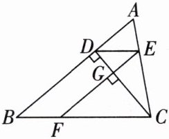 11. 如图所示,在$\triangle ABC$中,$CD\perp AB于点D$,$DE// BC交AC于点E$,$EF\perp CD于点G$,交$BC于点F$。