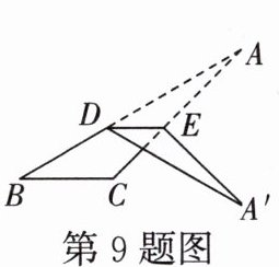 9. 如图所示,将$\triangle ABC沿着平行于BC$的直线折叠,点$A落到点A'$处,若$\angle C = 135^{\circ}$,$\angle A = 15^{\circ}$,则$\angle A'DB$的度数为