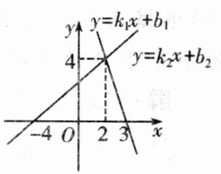 所以方程组$\begin{cases}y = k_1x + b_1,\\y = k_2x + b_2\end{cases} 的解为\begin{cases}x = 2,\\y = 4.\end{cases} $
