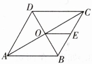 解:$\because菱形ABCD$,$\therefore AB = BC$,$OA = OC$,$\because E为BC$的中点,$\therefore OE为\triangle ABC$的中位线,$OE = \frac{1}{2}AB$,$BC = 2OE$.