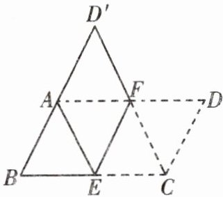 如图所示,将平行四边形纸片$ABCD$按如图所示的方式折叠,使点$C与点A$重合,点$D落在D'$处,折痕为$EF$。求证:四边形$AECF$是菱形。