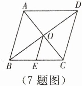 7. 如图,在菱形$ABCD$中,对角线$AC$,$BD相交于点O$,$BD= 8$,$AC= 6$,$OE// AB$,交$BC于点E$,则$OE$的长为______。