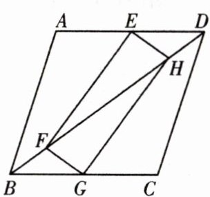 如图,矩形$EFGH的顶点E$,$G分别在菱形ABCD的边AD$,$BC$上,顶点$F$,$H在菱形ABCD的对角线BD$上。