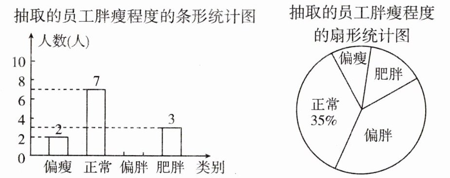 (1)抽取的总人数为7÷35% = 20,偏胖的人数为20 - 2 - 7 - 3 = 8,补全条形统计图如图所示.