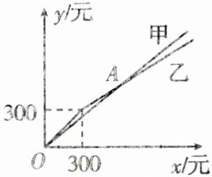 (1)由题意可得$y_{甲} = 0.85x$.当$0\leq x\leq 300$时,$y_{乙} = x$;当$x > 300$时,$y_{乙} = 300 + (x - 300)× 0.7 = 0.7x + 90$.$\therefore y_{乙} = \left\{\begin{array}{l}x(0\leq x\leq 300),\\ 0.7x + 90(x > 300).\end{array}\right.$