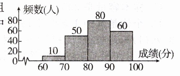 10. 某校学生“亚运知识”竞赛成绩的频数直方图(每一组含前一个边界值,不含后一个边界值)如图所示,其中成绩在 80 分及以上的学生有____人.