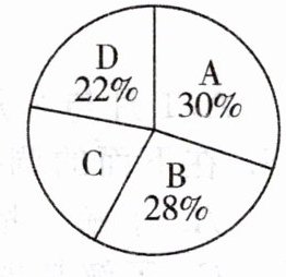 解:该班总人数为:$15÷30\% =50$(人). C 类占百分比:$1-30\% -28\% -22\% =20\%$. C 类人数为:$50×20\% =10$(人). 答:参加 C 类活动有 10 人.