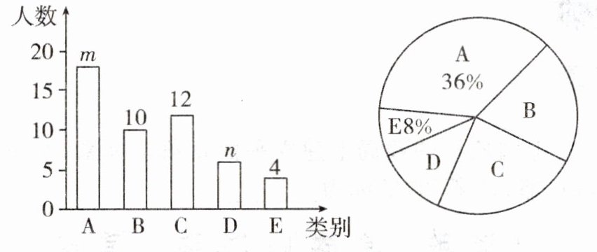 (1)条形图中的$m= $____,$n= $____,文学类书籍对应扇形圆心角等于____度;