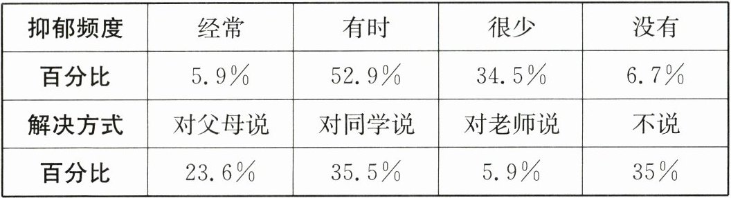 示例:①很多留守儿童有抑郁情绪;②解决抑郁情绪的主要方式是对同学说。