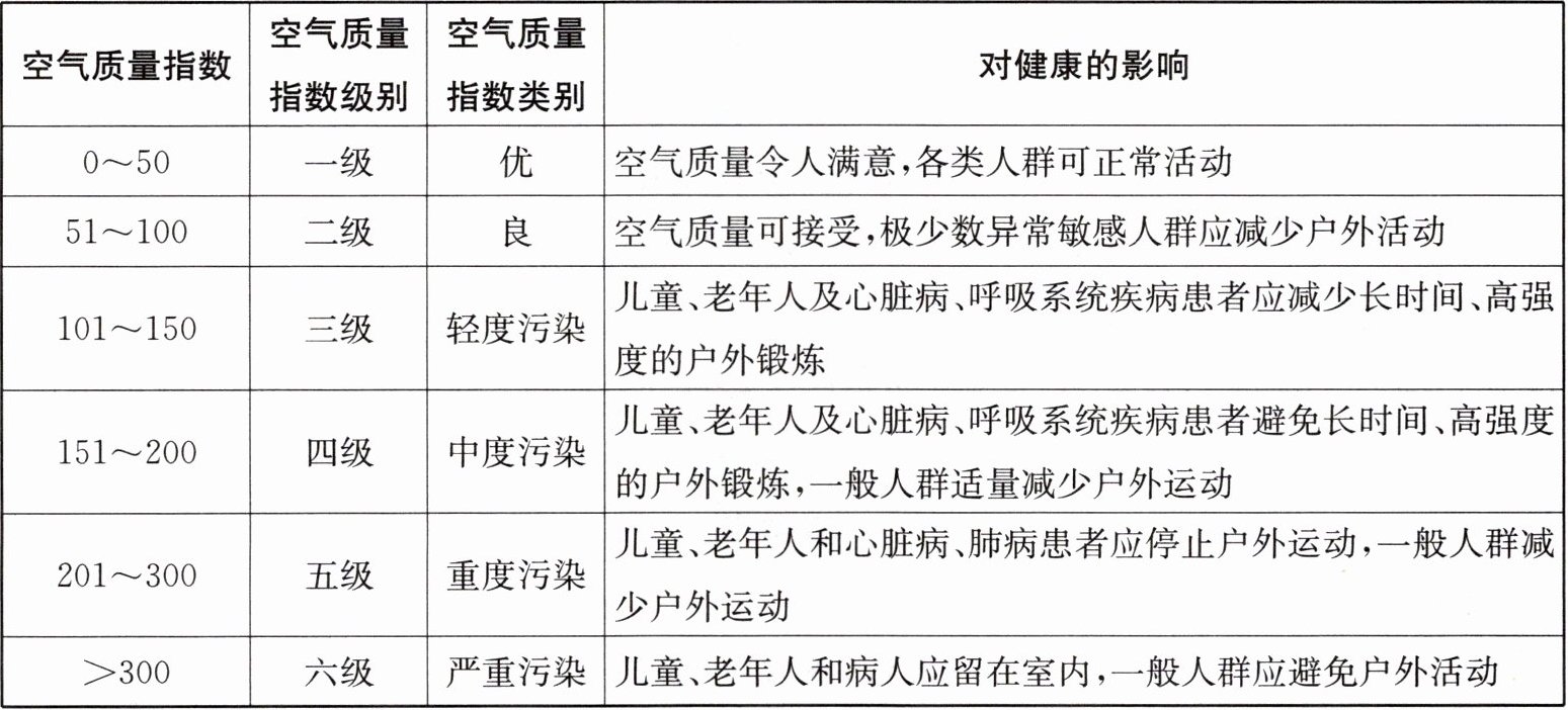 2. 学校拟定 12 月 1 日开展“迎新长跑”活动,查看天气预报后发现,当天的空气质量指数是 118。根据以上信息,你对学校开展此项活动的建议是